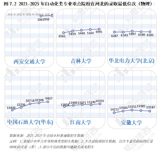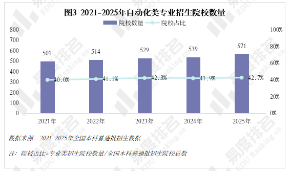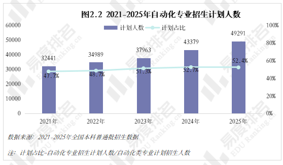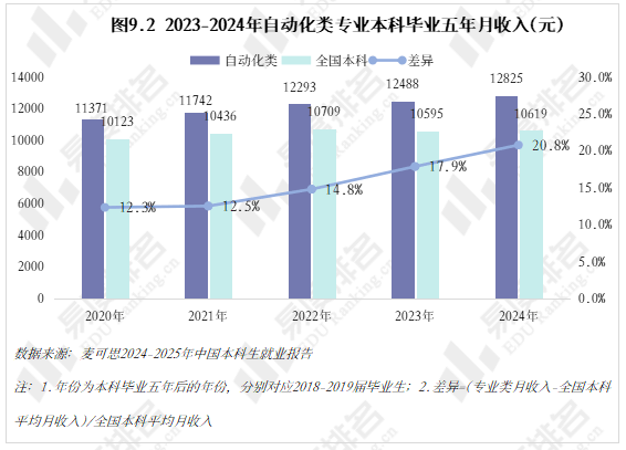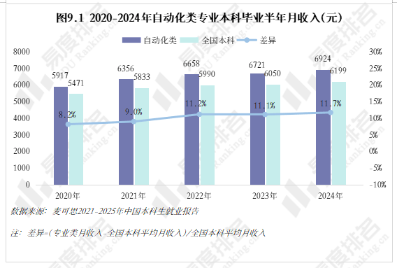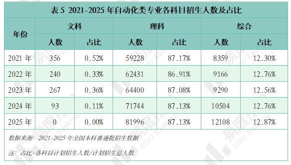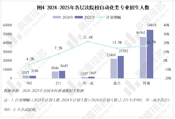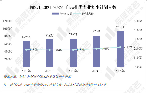 跟着智能制制的快速成长和工业4。0的深切推进,从动化类专业已成为工科范畴的抢手选择。该专业类招生规模持续扩大,机械人工程专业热度上涨。就业方面,虽然受宏不雅经济波动影响,从动化类专业结业生就业率仍加快攀升,笼盖智能制制、人工智能等多个高增加范畴。将来几年,从动化类专业很可能成为一个高就业率、高薪、高对劲度的“仙人”专业。从动化类专业点新增数量正在2021年触底后回升,2024年新增49个专业点。从动化(22个)、智能配备取系统(22个),人工智能、机械人爆火,相关财产人才缺口庞大,带动高校专业调整。 从动化类专业招生规模逐年扩大,2023年之前年增幅不到4000人以至呈现下降,之后每年添加8000人以上,这一拐点呈现正在2022年AI全球爆火之后,2023年我国AI财产极速成长,2025年AI智能体进入规模化使用拐点,复杂的市场规模急需海量的人才填补,相关专业招生规模估计正在将来几年将持续敏捷扩大。 新专业招生规模迸发式增加,保守专业遭到冲击,原专业类从体——从动化专业招生打算占比初次下降,由2024年的52。7%降至52。4%,机械人工程占比添加到32%,这两个专业招生打算合计占专业类的84%。跟着机械人市场规模持续扩大、政策取需求双轮驱动、手艺前进取贸易化加快,机械人工程专业很有可能替代从动化专业成为该专业类招生规模最大的专业。 从动化类专业进入新老迭代期,对讲授资本要求更高,办学门槛大大提拔,大都院校需更长筹备期来应对专业热度的骤升,因此院校占比相对不变。但从数量增幅来看,院校规模似乎也起头提速扩张,2021-2024年每年增幅仅10-15所,并有小幅波动,但正在本年呈现拐点:招生院校总数较客岁添加32所,接近过去几年合计新增数量。 有实力的高校都正在抢占风口结构从动化。除985外,各条理院校从动化类招生规模都正在扩大,双一流2025年较上一年增幅跨越20%,此中山西大学增幅达到150%以上。985院校本年招生规模较客岁降低,并非不注沉从动化类,而是试验班招生模式减弱了专业招生规模。如华南理工大学工科试验班招生打算占比由2024年的16。82%提拔至2025年的45。58%,正在招生总额根基不变的环境下,大都工科专业都有响应缩减,从动化类招生占比即由5。27%缩减至3。7%。 近五年从动化类专业招收文科\汗青考生的打算数逐年递减,至2025年完全归零,理科招生占比趋于不变,分析招生占比小幅添加,可知本年招生打算削减的部门多来自文科\汗青科目。 从动化类专业登科分数较着上涨,上涨专业占比约59%,下降专业占比仅26%。且下降幅度远不及上涨幅度,18%的专业上涨跨越5分,而下降跨越5分的专业仅有5%,且集中正在较低条理院校。 专业升温,登科位次天然水涨船高,985、211等高条理院校近五年登科位次就表示出较着的上升趋向。以省为例,选择招生打算波动较小(幅度不跨越3%)的六所高校进行展现,能够看出各校登科位次虽无大的波动,但根基都正在爬升,中国石油大学(华东)2025年登科位次较2021年上升了快要4000名。 相关财产规模激增,人才缺口日益扩大,从动化类结业生就业愈加容易。正在全国本科平均就业率逐年下降的大趋向下,从动化类专业就业率逐年上涨,自2020年起头就业劣势较着回升,从2。1%扩大至6。5%,就业率增加曲线年抬升,增速变快。 从动化类专业结业生薪资劣势同往年不同不大,较平均程度超出跨越10%上下,这一差值尚未因市场爆火而快速增大。正在财产成长初期、应届生人才稀少的环境下,已有几年工做经验的人最先参取到新兴财产的增加,数据显示:结业五年月收入就业劣势自2021年起加快上涨,本年已比平均值超出跨越20。8%。 同很多理工类专业一样,已经的从动化类专业因春秋危机等要素了职业天花板,结业五年就业对劲度长年低于平均值,这一场合排场正在2022年起头有所好转,并正在今岁首年月次跨越平均程度。从数据上看,薪资增加是对劲度上涨的次要缘由,两者有着不异的增加曲线。除此以外,从动化类就业对劲度还源于其普遍的行业适配性、国度政策支撑及复合型人才培育模式,结业生可正在工业从动化、智能制制、人工智能等多个范畴就业,职业选择矫捷,同时,手艺门槛拉高职业成长天花板,晋升通道由受阻变为敞开,能收成更多价值感取成绩感。
